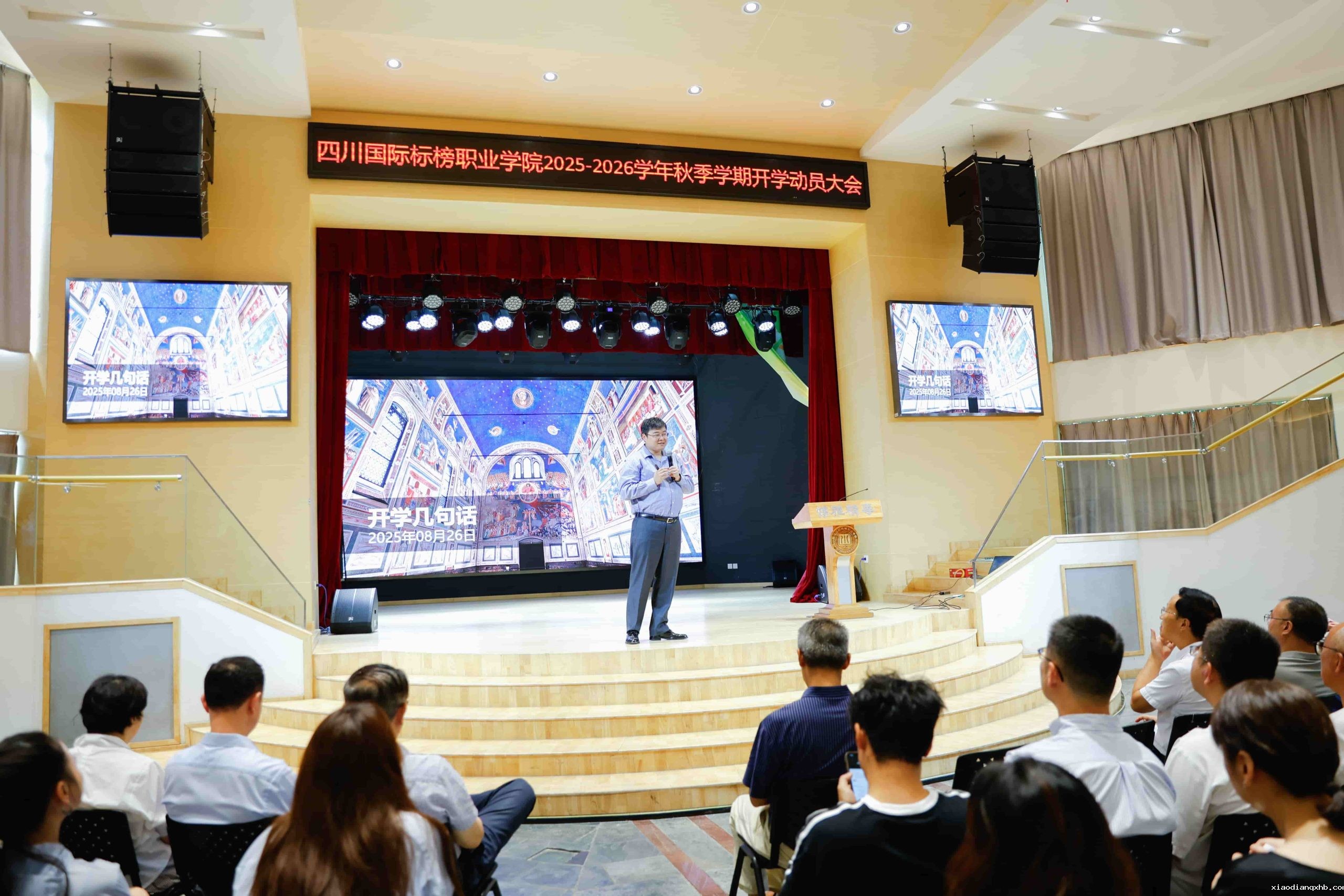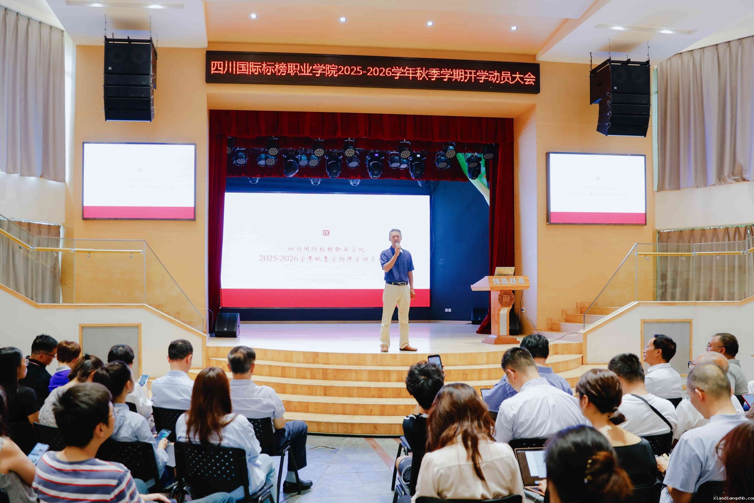 为统一思想,压实责任,进一步凝聚思想共识、提振干事劲头,确保秋季学期各项工作平稳有序推进,明确新学期发展目标与重点任务,8月26日上午,我校在小剧场召开2025-2026学年秋季学期开学动员会,学校党政领导班子成员全员出席会议,全体教职员工参会,会议由党委副书记、副院长孙启平主持。