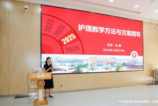 紧接着,全国青年教师讲课比赛二等奖获得者许毅副教授,围绕“护理教学方法与方案撰写”展开了深入讲解。他介绍了多种创新教学方法,如互动式、案例教学、情景模拟等,并强调了系统化教案设计的重要性。许教授鼓励教师们养成定期回顾教学过程、分析教学效果、反思调整教案的良好习惯,以持续提升教学质量。